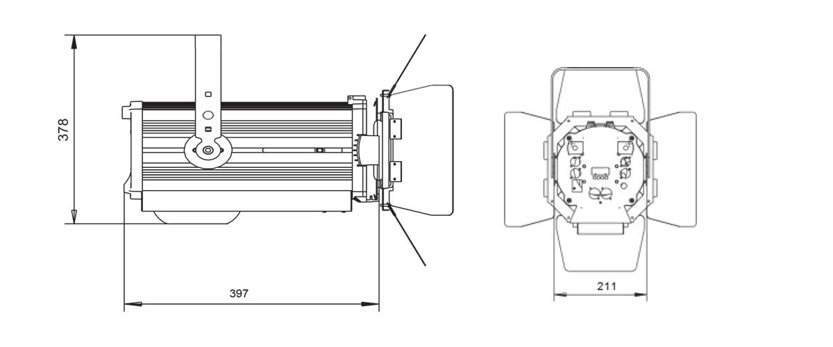 ה–Fresnel 600 כולל מנגנון Zoom ידני או DMX, המאפשר שינוי זווית האלומה ישירות מהקונסולה, ללא צורך לגשת לגוף הפנס. בנוסף מצורפים Barndoors ארבעה דלתות לעיצוב מדויק של האור על הבמה.