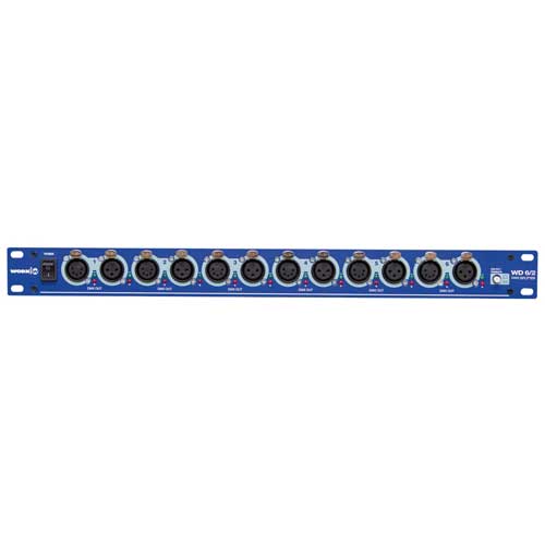 בספליטר WD6 2 Splitter, של חברת WORK שש יציאות DMX מתאימים לכבל 5 פין XLR ו6 יציאות DMX מתאימול לכבל 3 פין XLR