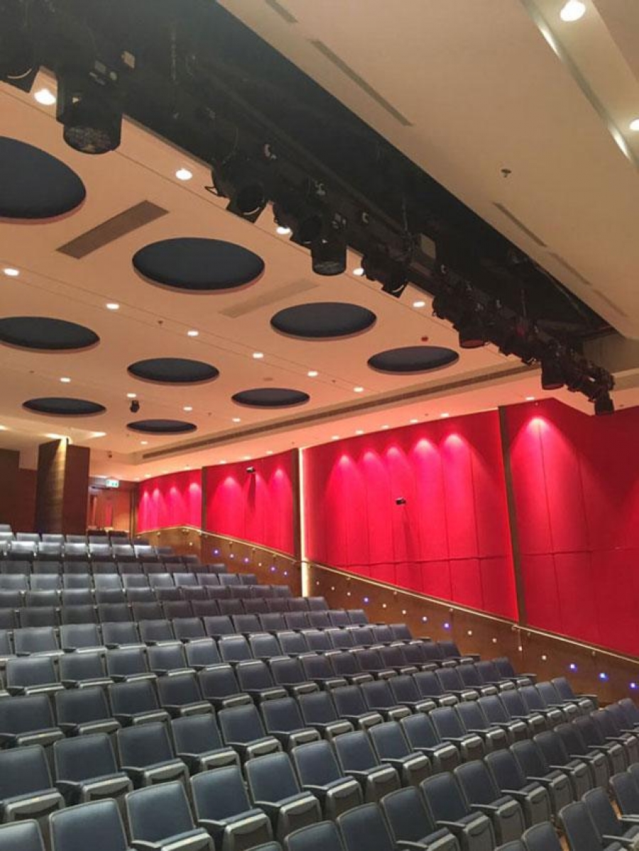 באודיטוריום שלווה שבירושלים, סיפקנו והתקנו את מערכות התאורה באולם.
