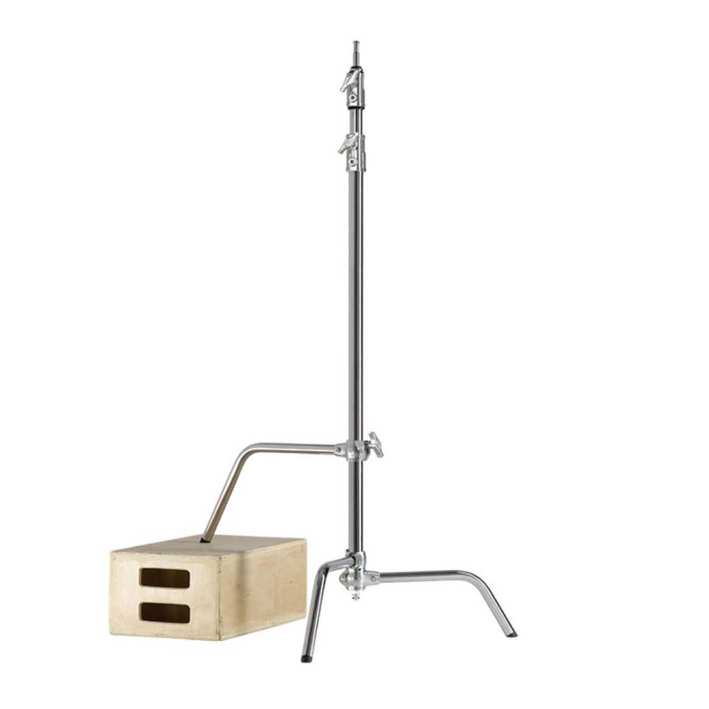Kupo sliding leg C stand features one sliding leg, which allows the stand to adapt to uneven terrain such as stairs or hillsides. This feature provides optimum support of your light heads, reflectors or gobos.