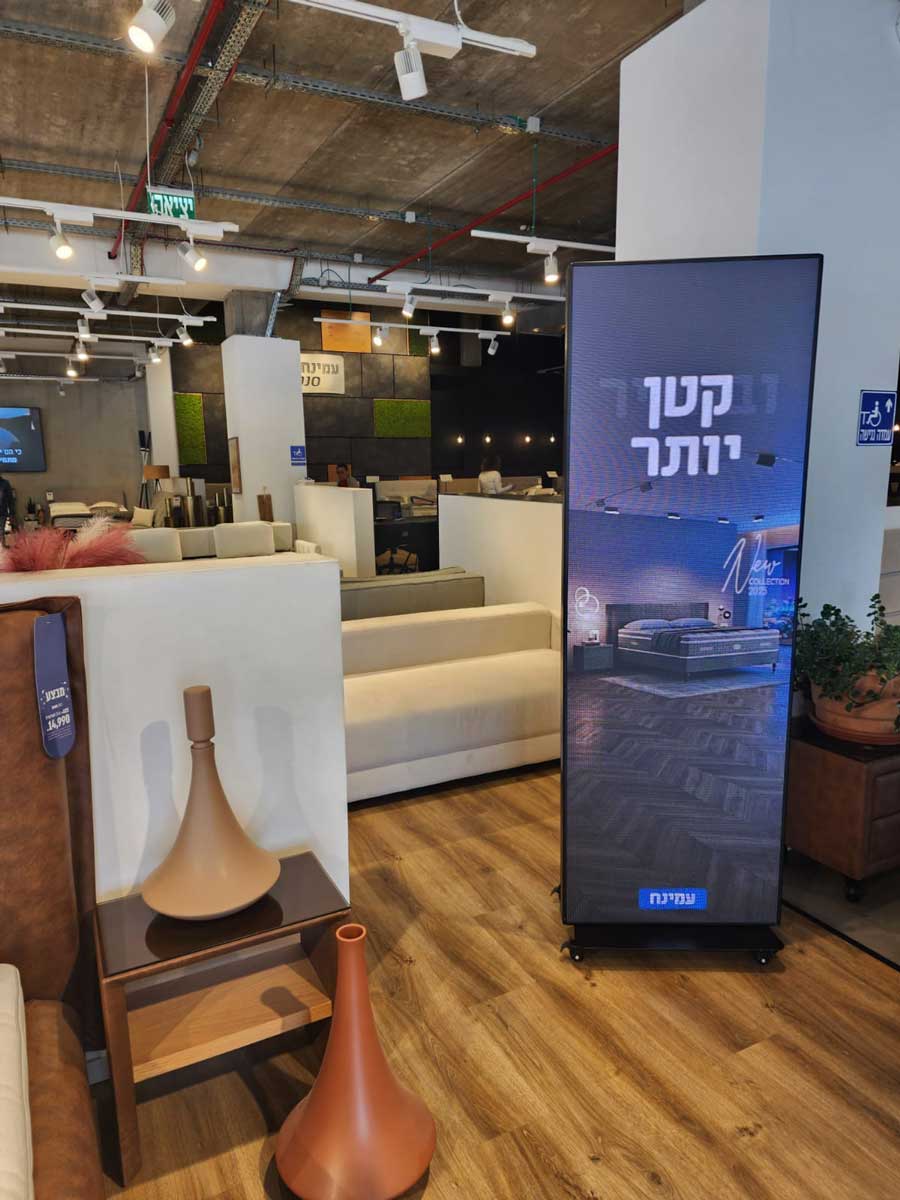 ב"דנאור מסכי לדים" גאים להוביל את תחום המסכים הדיגיטליים לעסקים עם פרויקט בפריסה רחבה עבור רשת עמינח – מותג מוביל בתחום הריהוט והנוחות.