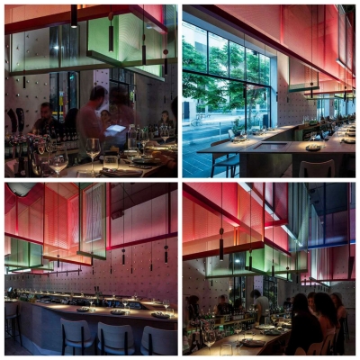 במסעדת YA PAN שבתל אביב, מערכת בית חכם שולטת במצבי התאורה של גופי תאורה תוצרת…