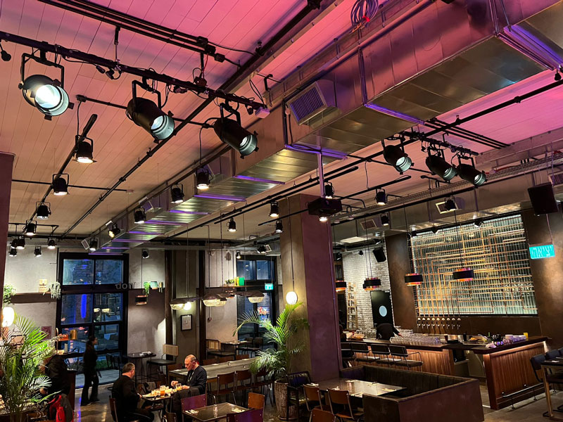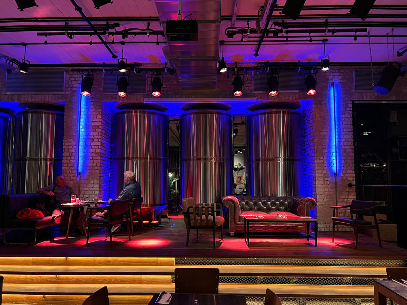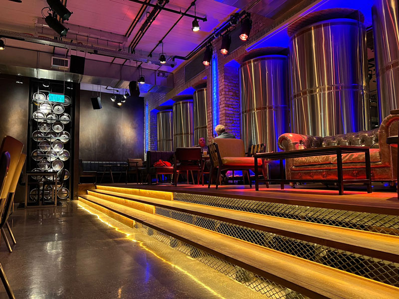 למקום דאגנו לספק, להתקין ולתכנת מערכת תאורה מורכבת המיועדת להאיר את חללי המסעדה, את במת ההופעות במקום, הבר, האלמנטים השונים (החביות בירה האלה פשוט מיוחדות!) ועוד..