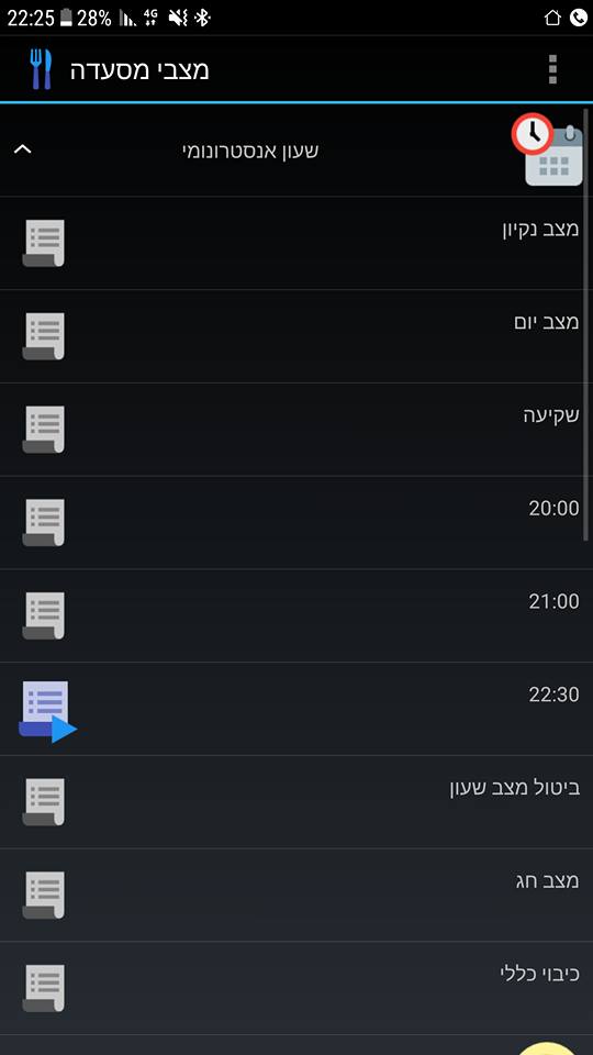 למערכת אוטומטה שעון אסטרונומי המקנה שליטה לפי שעות היום בתאורה שבמקום, הדלקת התאורה בשעת שקיעת השמש. שליטה על תאורת החוץ במקום ושליטה על מערכת המזגנים שבמקום בלחיצה מהנייד או מהטאבלט.