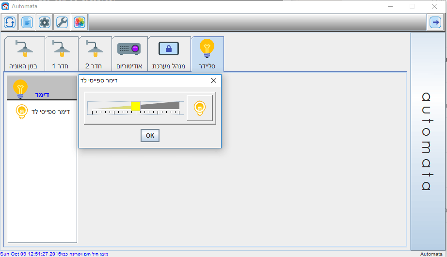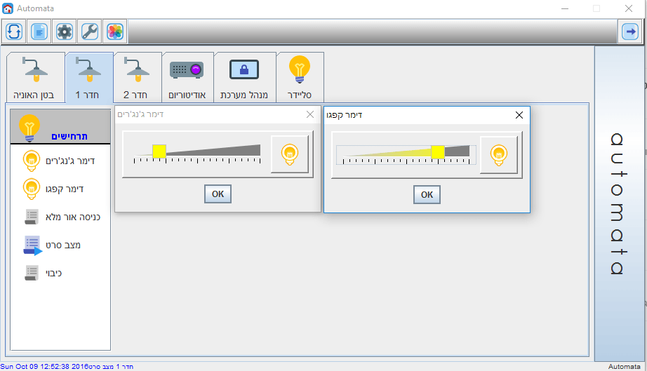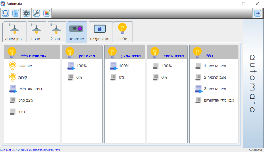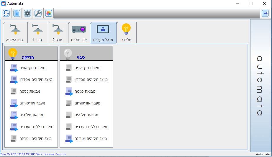• מערכת שליטה על התאורה, הכוללת דימרים והפעלות מיתוג