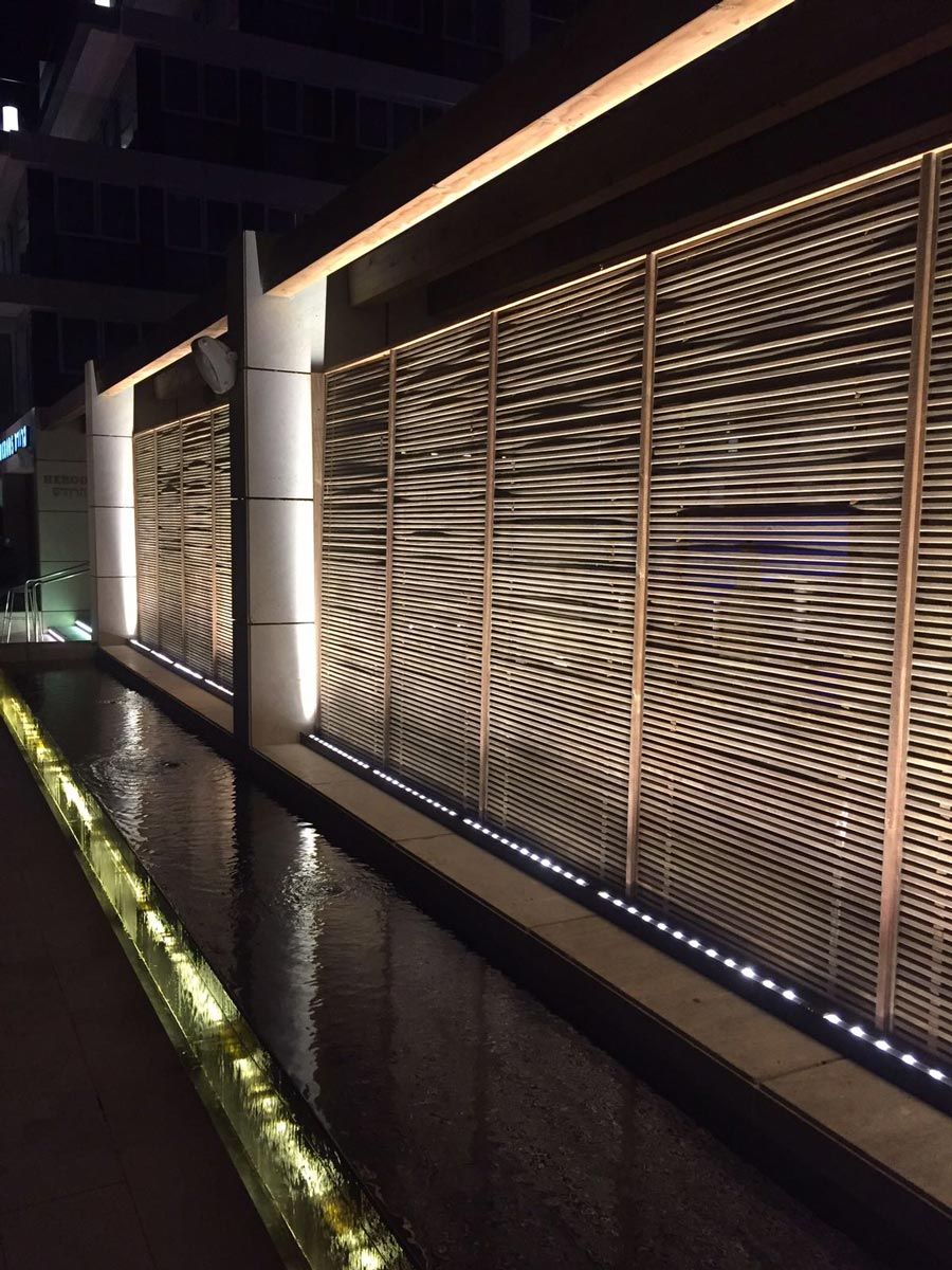 פרופילי הלד החדשים שהותקנו בתוך תעלות פח מגולוון מוגני מים בדרגת הגנה של IP67, עם עדשה אובלית.