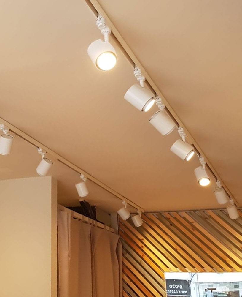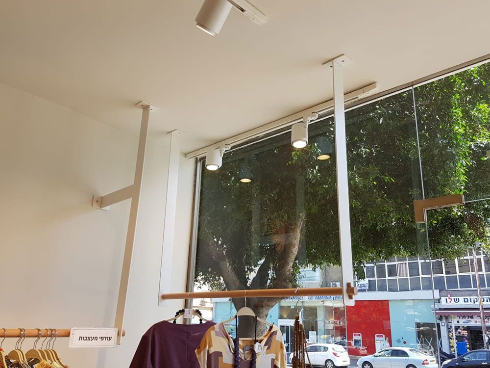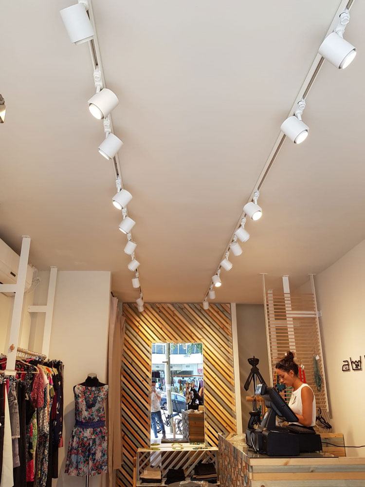 בחלל החנות תוכלו למצוא פסי צבירה תל פאזיים לבנים תוצרת חברת UniPro, ועליהם גופי תאורה מסוג Water Drop, הפעם בעוצמה של 22W.