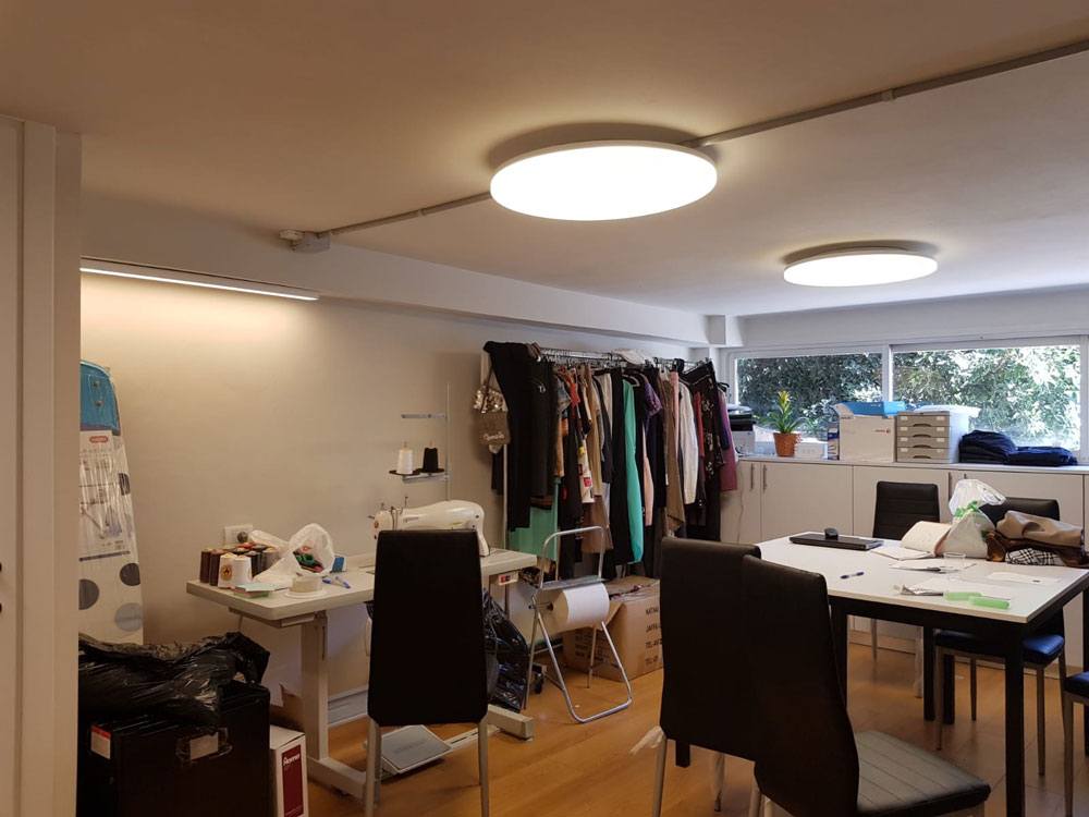 באזור המתפרה השתמשנו בגופי תאורה צמודי תקרה.