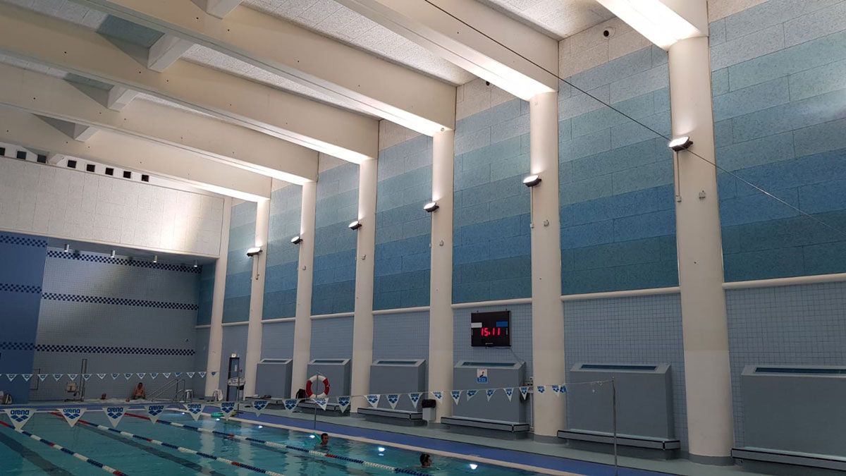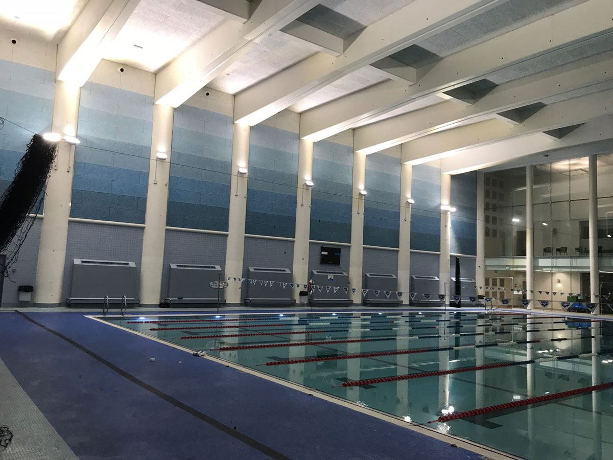 במרכז הספורט YMCA דאגנו לספק את גופי תאורת ההצפה עבור הבריכה המקורה.