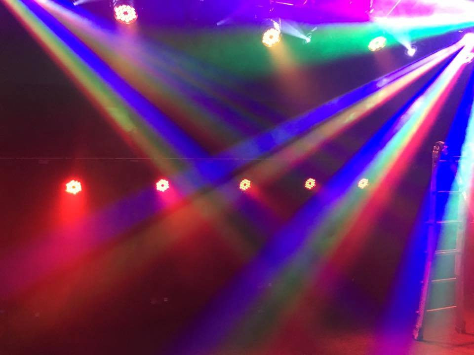 - פנסים מובילים של חברת Eco Stage פאר לד, ומובינג לייט שהותקנו על הבמה