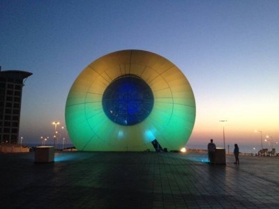 הפסל "עין השמש" שעוצב על ידי האומן מוטי מזרחי מואר ב-4 פנסי DUAL 800 תאורה…