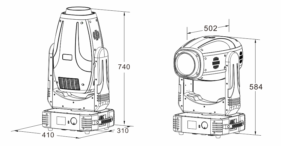 הפנס כולל מערכת צבעים CMY מלאה, עם גלגלי גובו מתחלפים, אפקטים מתקדמים, זווית הארה רחבה במיוחד במצב Spot וצרה וממוקדת במיוחד במצב Beam – מה שמאפשר מעבר חלק בין אווירה דרמטית לפיזור רך ועוטף.