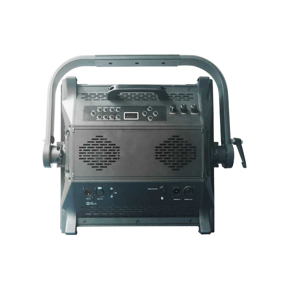 פנס אולפנים מבית Eco Stage, מבוסס לד בעוצמה של 300W, משולב 6 צבעים (RGB+WW+CYAN+LIME), ועם זווית הארה של 140° לאפקט ריכוך.