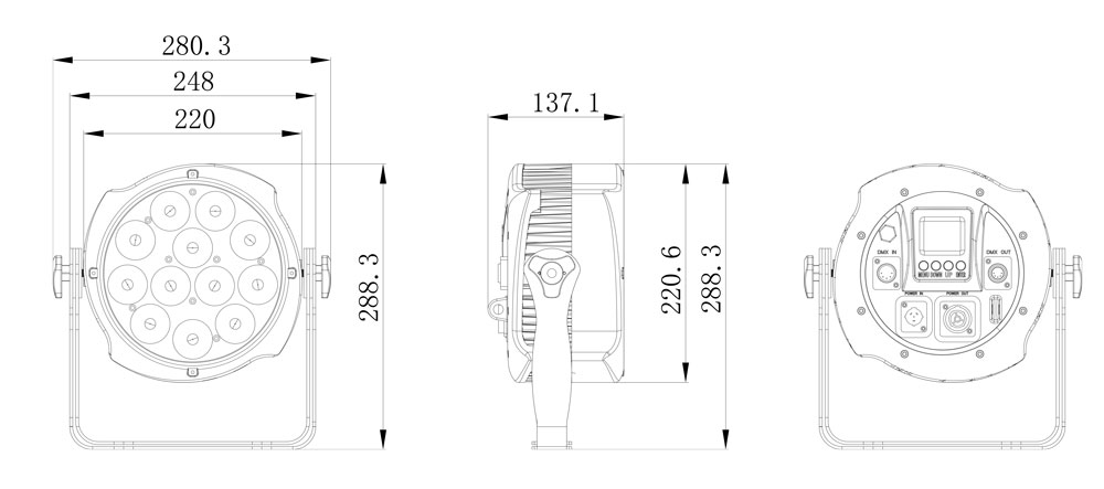 פנס PAR LED עם 6 צבעים RGBWA-UV, פנס תאורת במה עם 12 לדים בעוצמה של 10W, פנס צר (פנס פיתה).